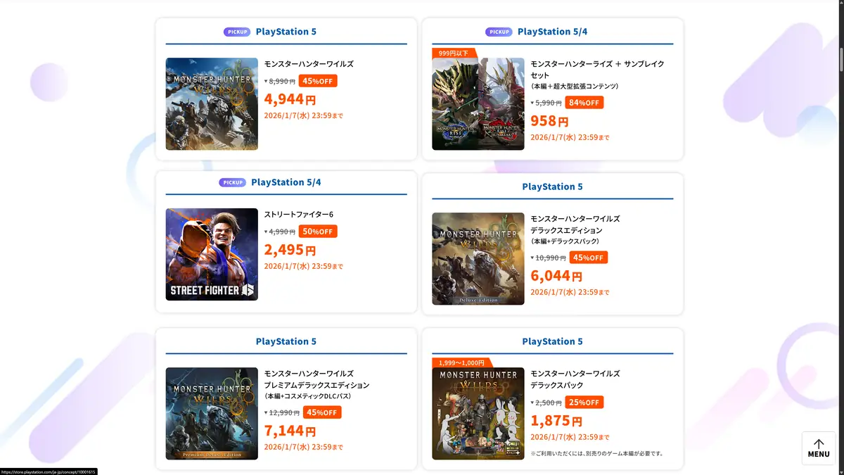 カプコンウィンターセールは2026年1月7日(水)23時59分まで開催中。