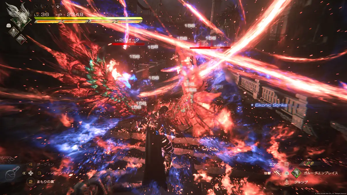 FF16最大の特徴であり、ハイライトと言えば、イフリート、フェニックス、ガルーダなどの召喚獣同士がぶつかりあう超巨大バトル。