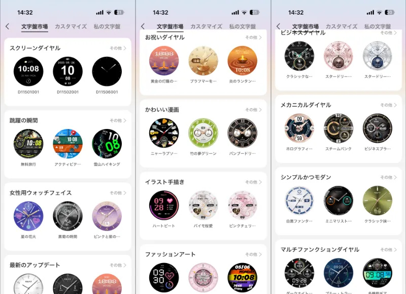 画面サイズ:1.32インチ|ガラス:サファイアガラス|電池持ち:最大14日間|センサー:4PDセンサー|心拍数計測|血中酸素濃度計測|防水性能:IP68|Bluetooth 5.3|通知/通話対応