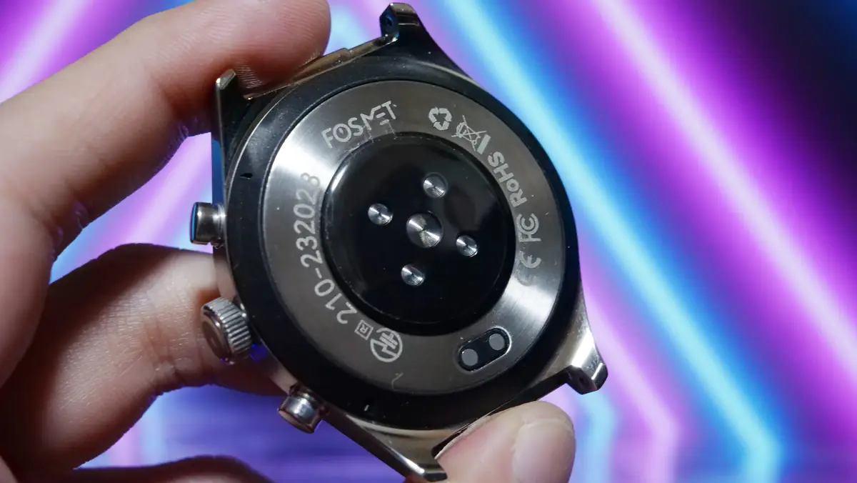 4PDセンサーを搭載しているため、心拍数や血中酸素濃度、ストレス度を継続してモニタリングできるほか、ステンレス製の裏蓋は肌への密着性も良好。AMOLEDを搭載しているため、画面は明るくて鮮やか。文字も見やすいため、カジュアル用途でもビジネス用途でも使いやすい。