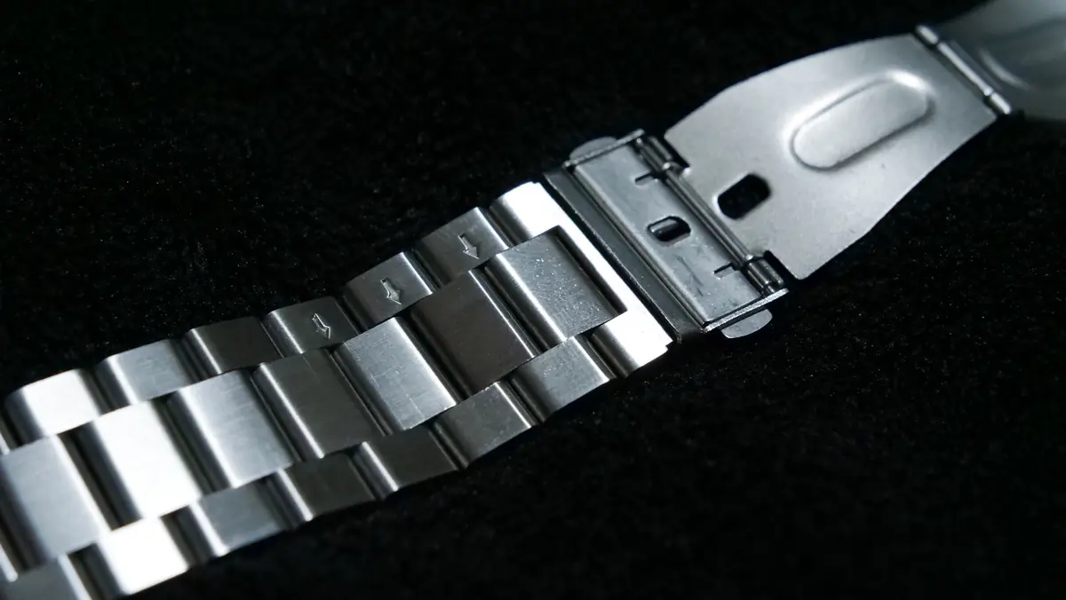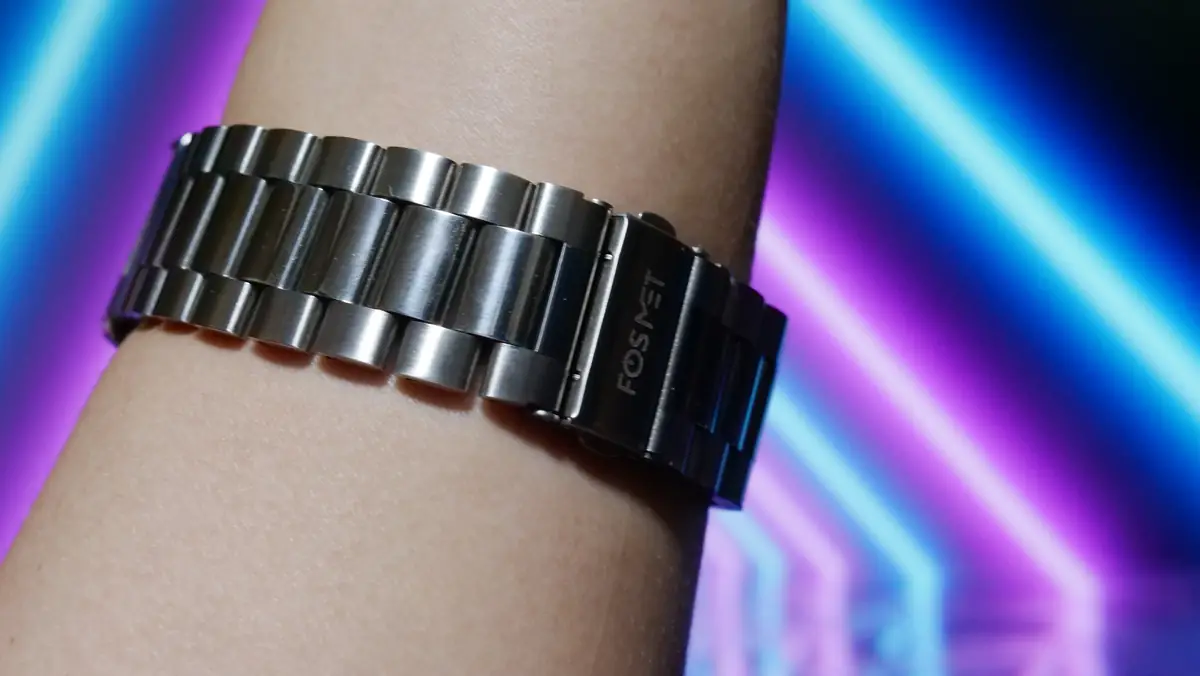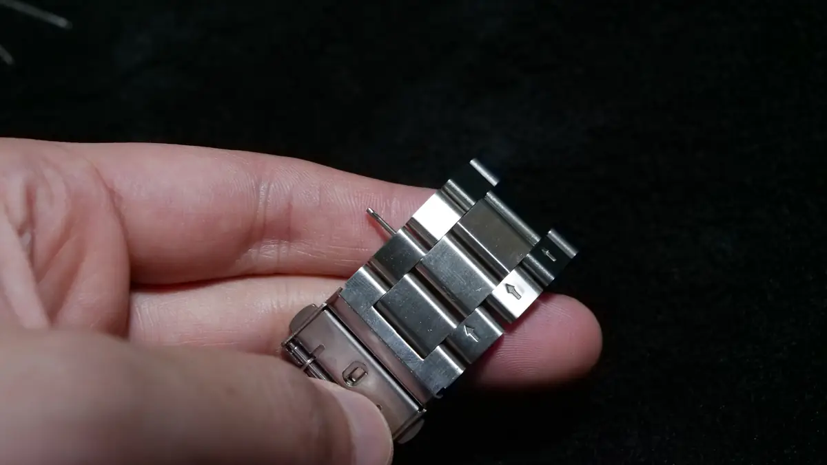 FOSMET R1のメタルバンドは”矢印”が書かれている”コマ”を外して、バンドの長さを調整できます。