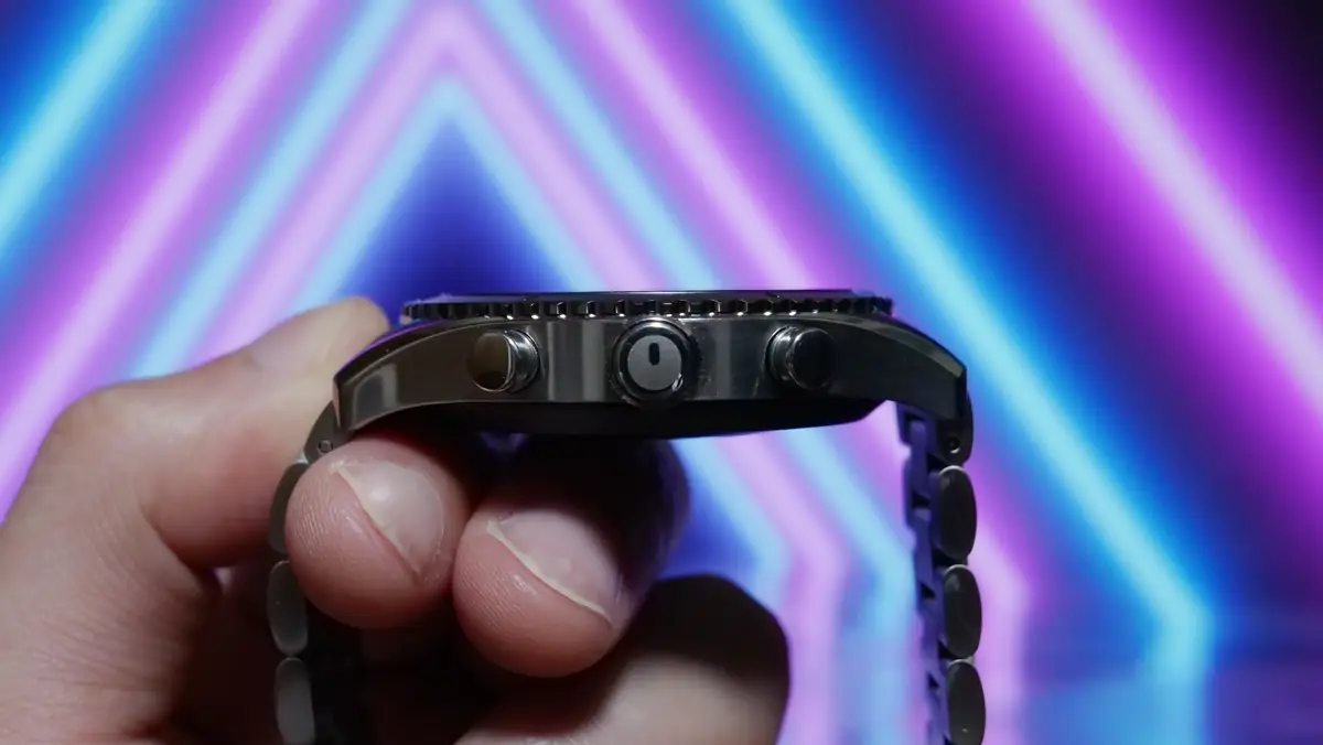 詳細は後述しますが、本体側面には3つのボタンを搭載しており、下のボタンはカスタマイズに対応。クラウンによるスクロール操作にも対応しているため、使い勝手も良好です。