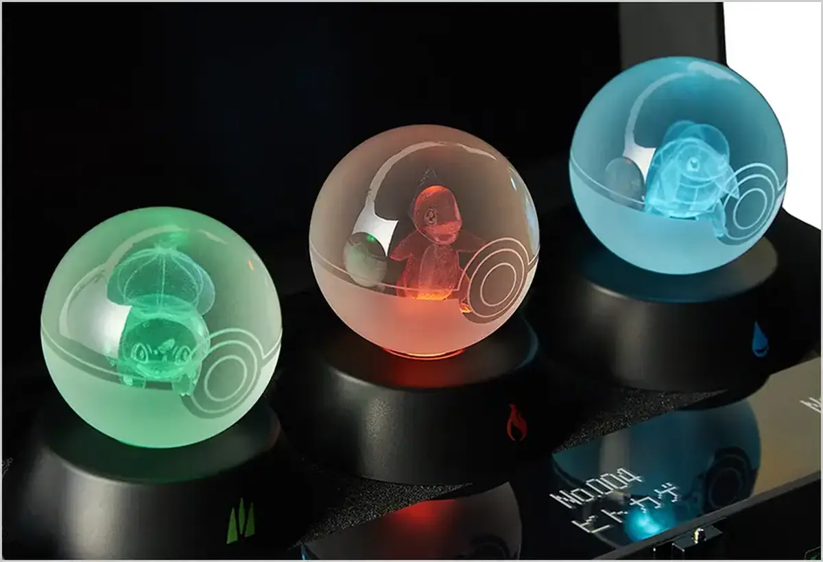 特別版に付属するカントー御三家3匹を3Dレーザー彫刻で再現した、特別なモンスターボールオブジェが...エモすぎる。