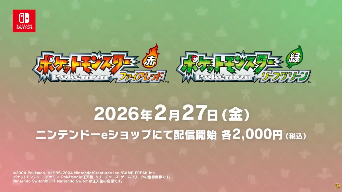 任天堂スイッチ版「ポケモン ファイアレッド・リーフグリーン(FRLG)」が2月27日発売
