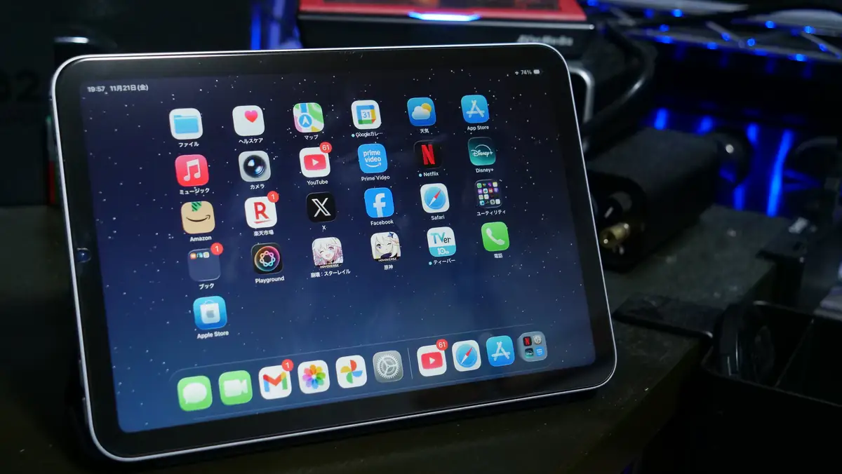 iPad miniは、8.3インチのLiquid Retina ディスプレイを搭載し、P3広色域、True Tone、フルラミネーション、低反射コーティングに対応しており、輝度は500ニトと控えめですが、室内の使用では十分明るく、文字も色も鮮明で高精細。