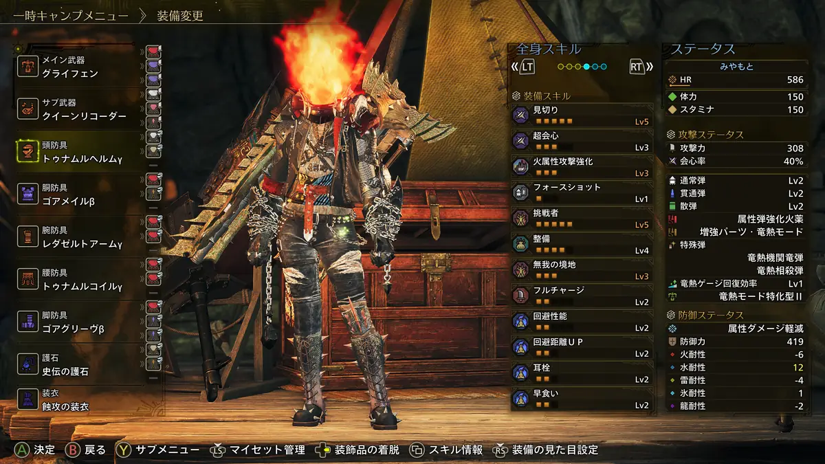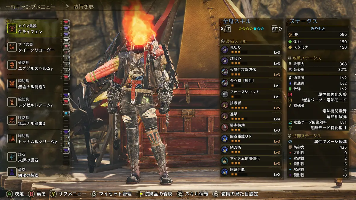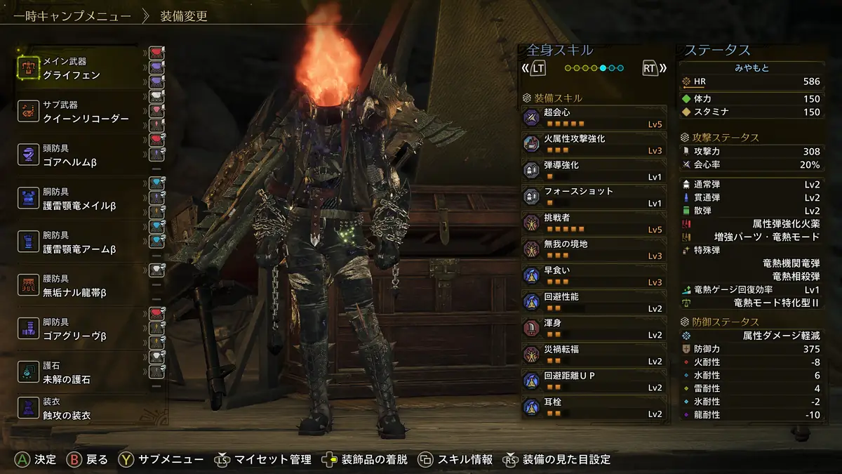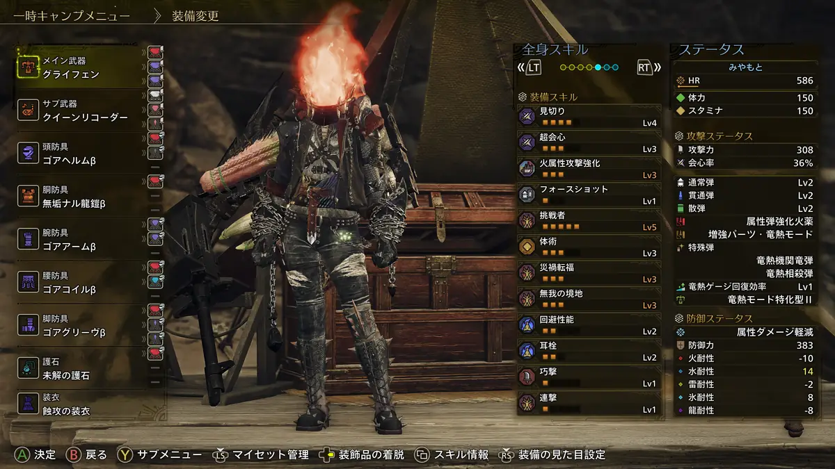 火力と生存、快適スキルを両立した属性ヘビィの装備構成は上記の通り。