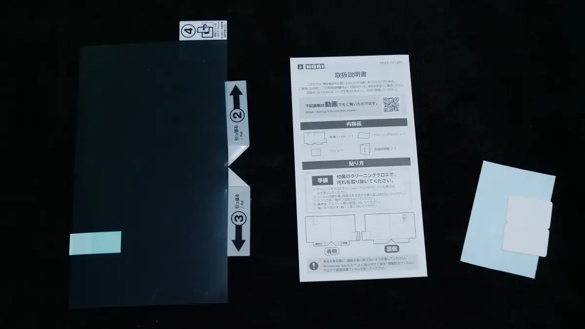 説明書も丁寧で分かりやすく、独自の「ピタ張り」であっという間に任天堂スイッチ2に張り付けられます。