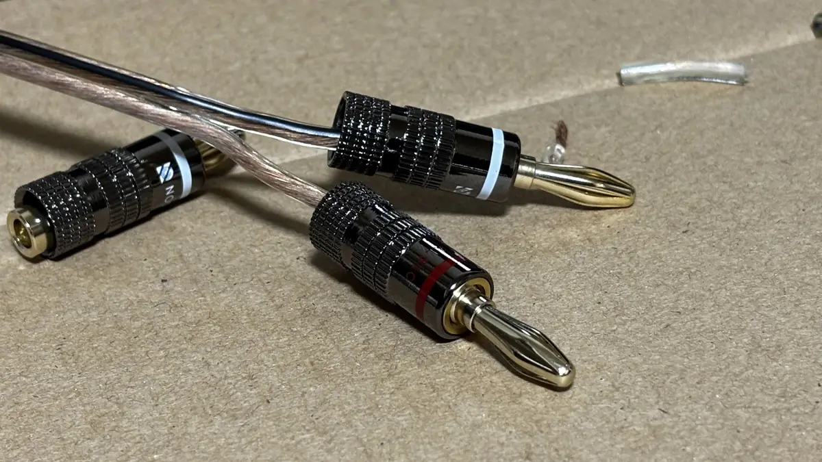 ちなみに、僕はNOSTALSICのバナナプラグを使用してます。スピーカーケーブルはAmazonベーシックの16ゲージ。