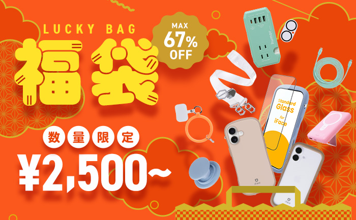 iFaceをはじめとした人気のスマホケースやMagSafe対応モバイルバッテリーがセットになった福袋もお得。価格は2,500円~となっており、ケースとガラスフィルムのセットやMagsafe対応アイテム、チャーム・ストラップセットなど、様々な組み合わせのネタバレ福袋がラインナップ。