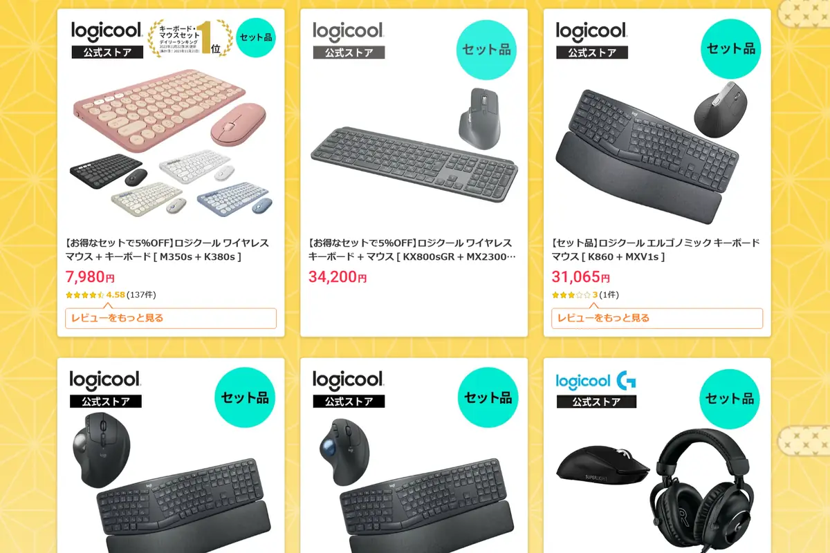 ロジクールは、ワイヤレスマウスとエルゴノミックキーボード(K860+MXV1s)のセット商品やLogicool Gのゲーミングマウス+ゲーミングヘッドセットなどが初売りでお得。