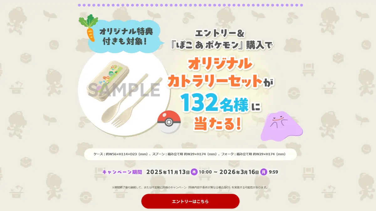 エントリー&「ぽこあポケモン」の購入でオリジナルカトラリーセットがもらえるキャンペーンが開催中