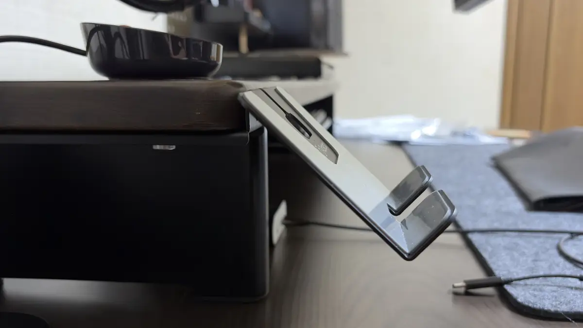 ガジェットホルダーにはケーブルを通すための穴も設けられているので、StreamDeckを使っている人にはほぼ一択レベルで相性良いかも。