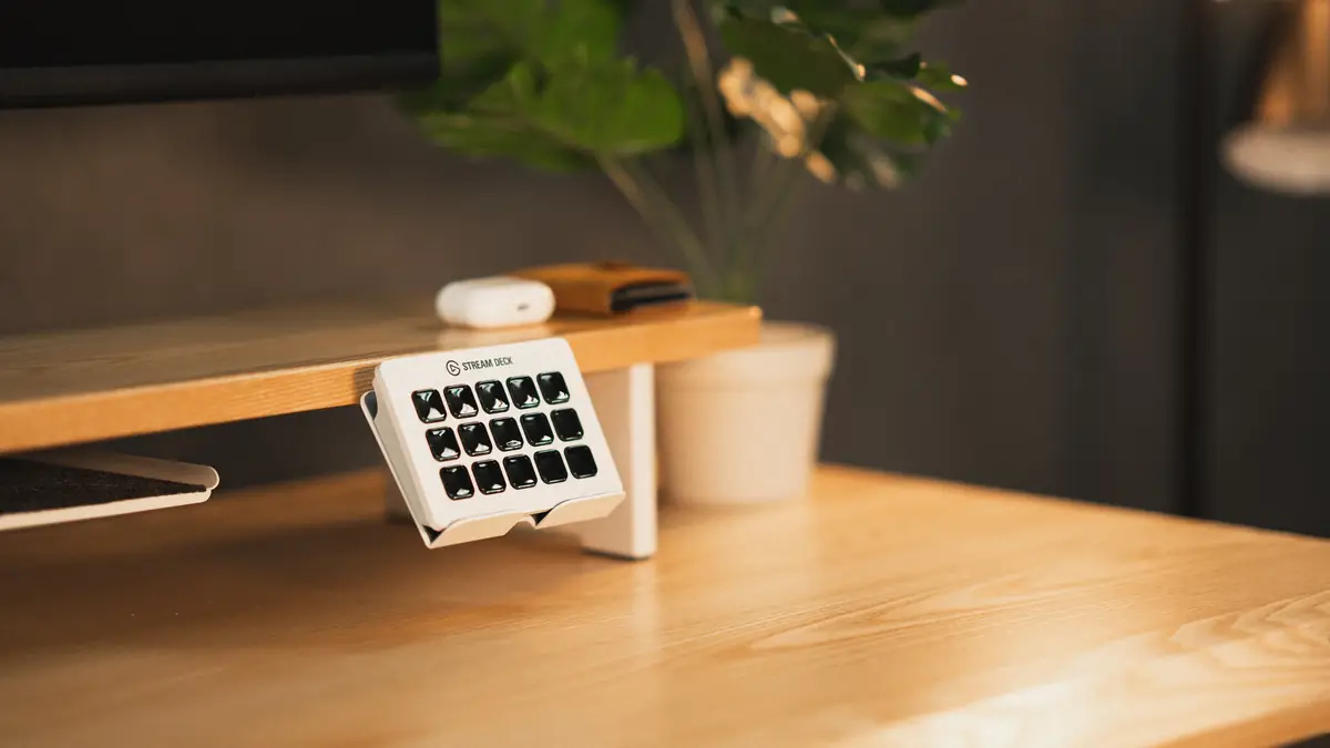 耐荷重は500g。サイズが合うガジェットであれば安定しておくことができるほか、ボタン1発でアプリを起動したり、様々なカスタムができる「StreamDeck」はジャストフィットする模様。