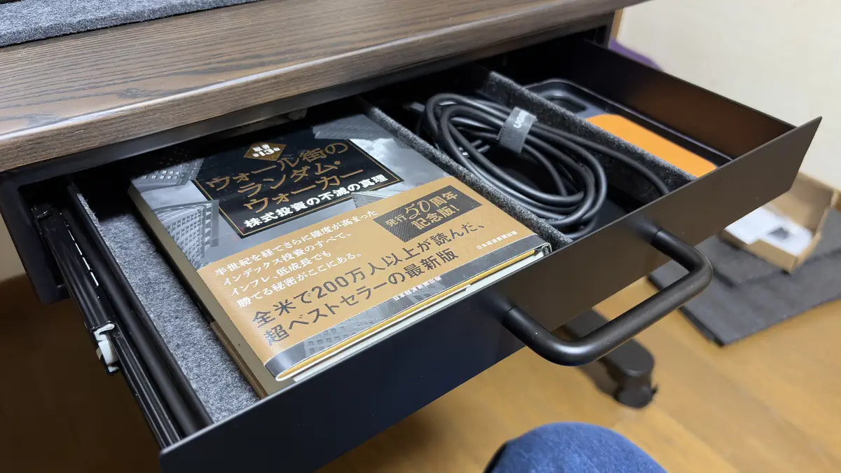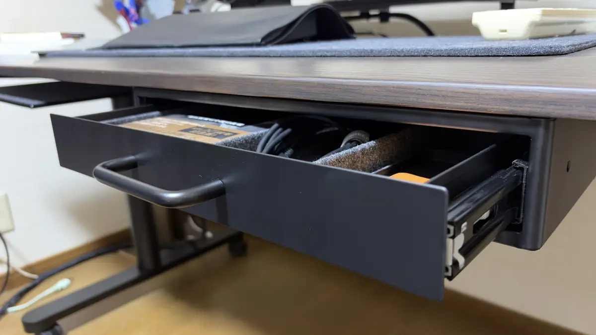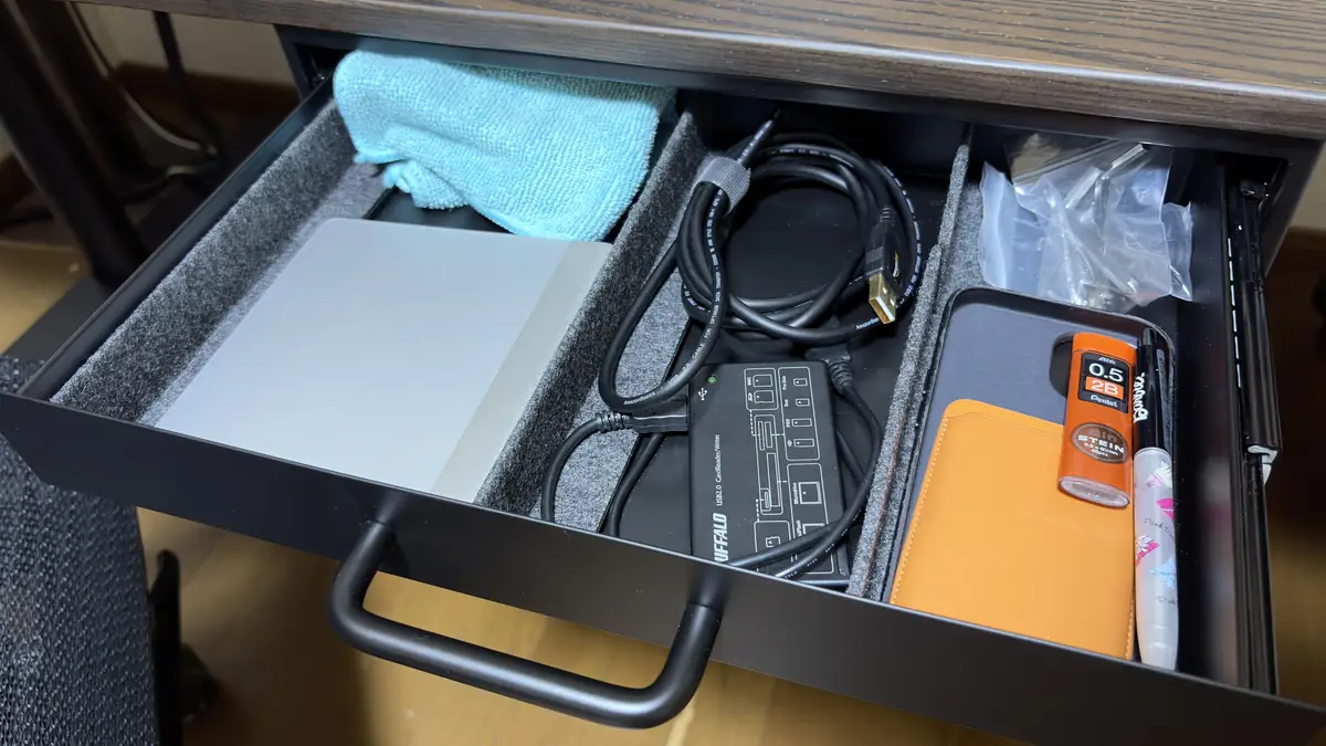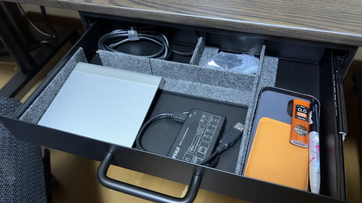 若干の取り付けにくさはデメリットですが...引き出しがあるのと無いのとではデスクの整いっぷりが全然変わるんじゃないかなと。