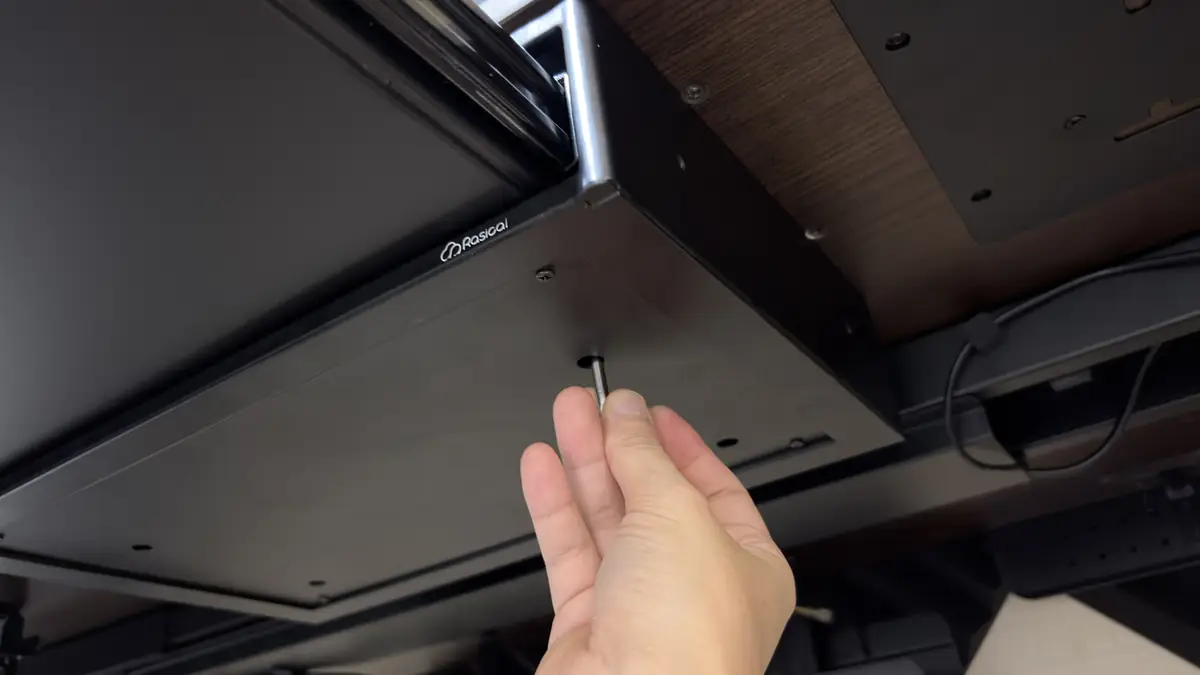 最後に、Rasical Drawer for Desk/Tableの引き出しを開き、下側にある穴からネジを締めて完了です。