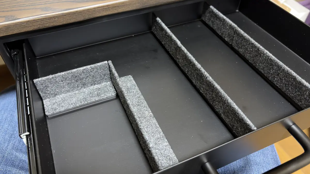 仕切りは磁石でくっつき、簡単に動かせるので、自分が使いやすいように引き出しの中を仕切れます。(僕は縦に区切って使ってる)