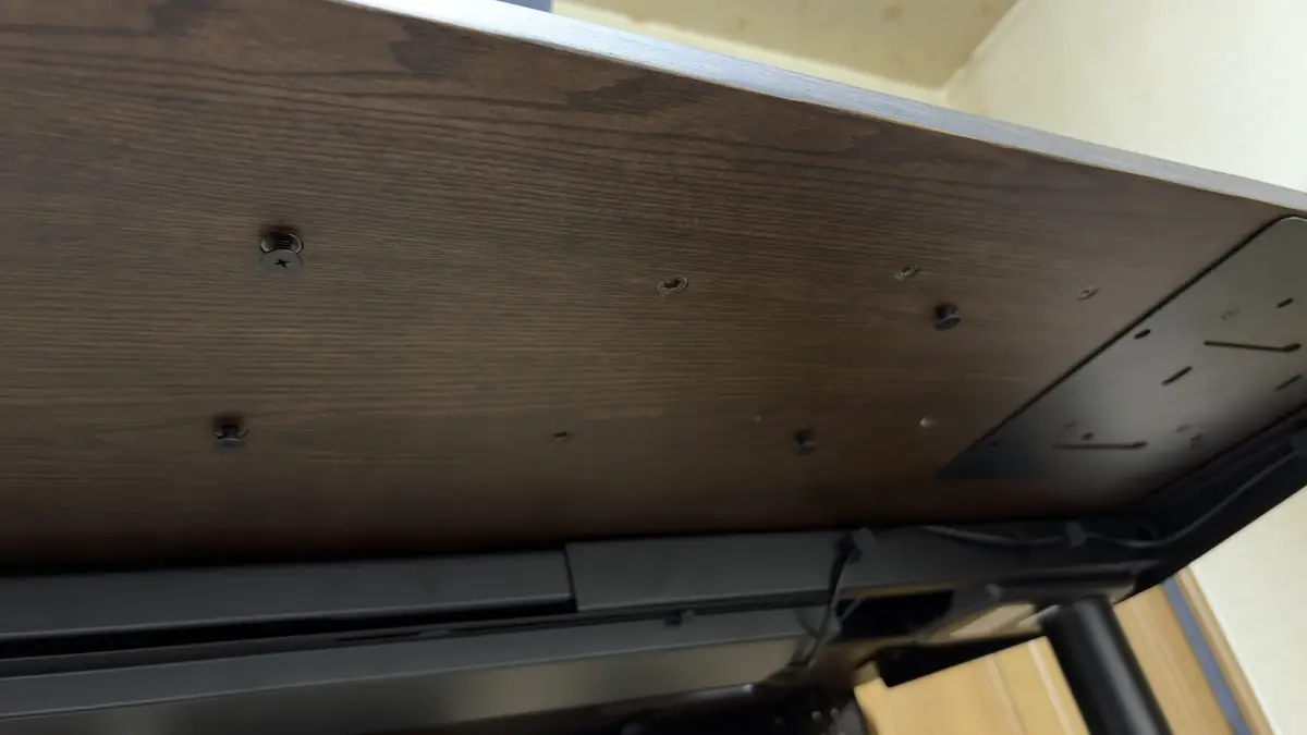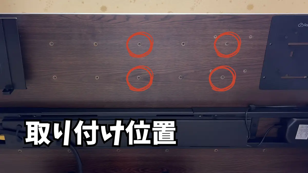 僕のラシカルデスクはすでにPCトレイなどを取り付けているため、上画像の位置に取り付けましたが、同列にあるネジ穴ならどこにでも取り付け可能です。
