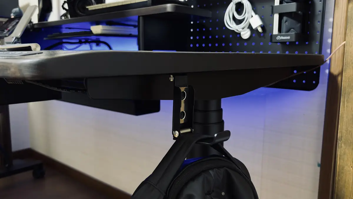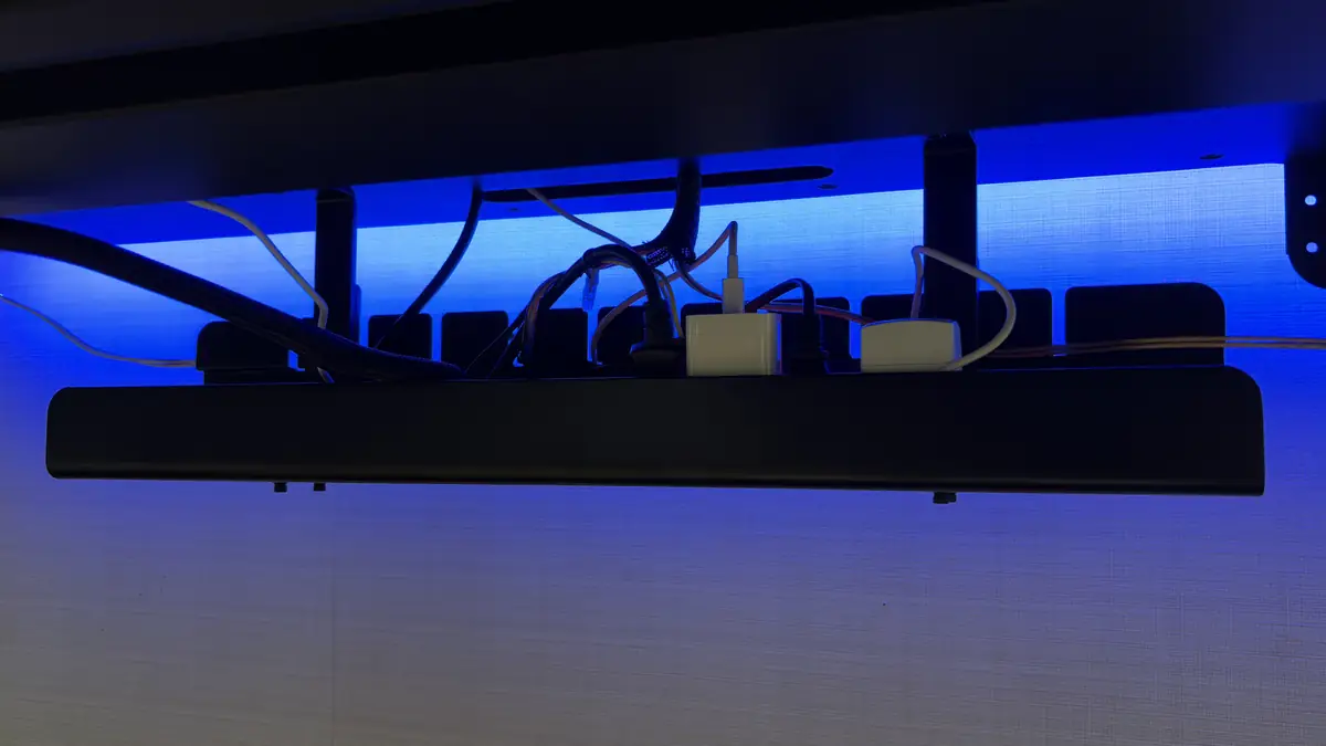- ケーブルや電源アダプタ含め、天板下に綺麗に収納できる。
