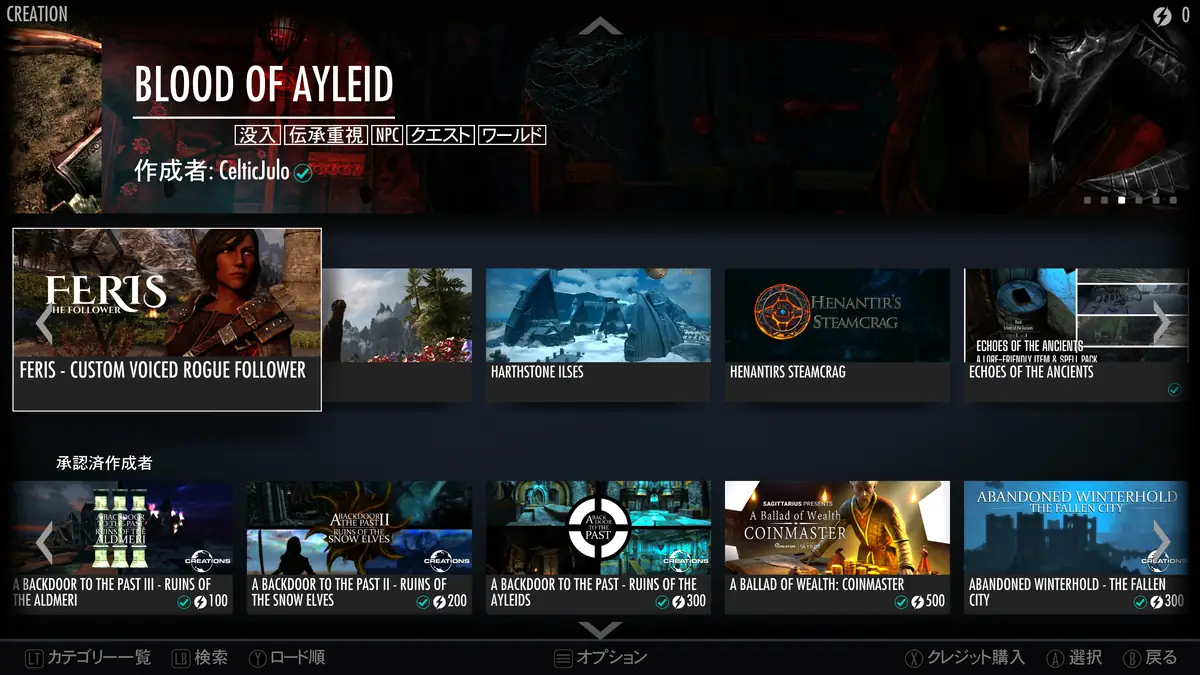 スカイリムAEは、Creation Clubの豊富な「Creation(MOD)」をPCだけじゃなくて、コンソール機で使うことができます。