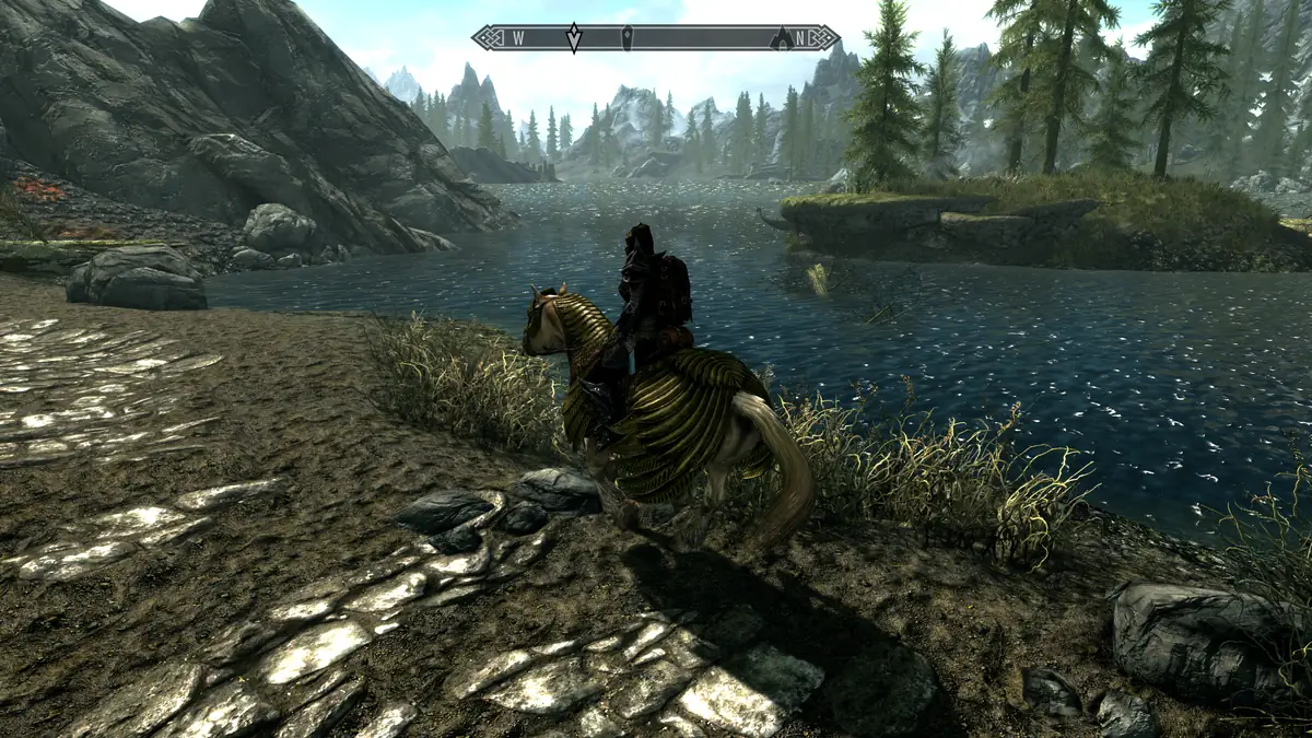 NEXUS MODなどで本格的なグラフィック関連MODを適用した場合と比べると、さすがに見劣りしますが、高解像度テクスチャが適用されていることもあり、バニラ状態でも違和感なく綺麗な画質でスカイリムの世界を冒険できます。
