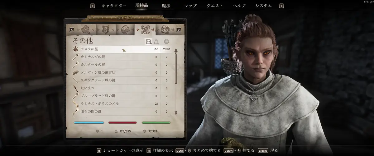 スカイリムほどの自由度は無いものの、自由な探索と豊富なクエストは健在で、ビルドの自由度の高さはスカイリムを超えるかなと。カンストしない限り、キャラクターの性能はプレイヤーごとに間違いなく変わるので、自分が求めるプレイスタイルを追求できます。