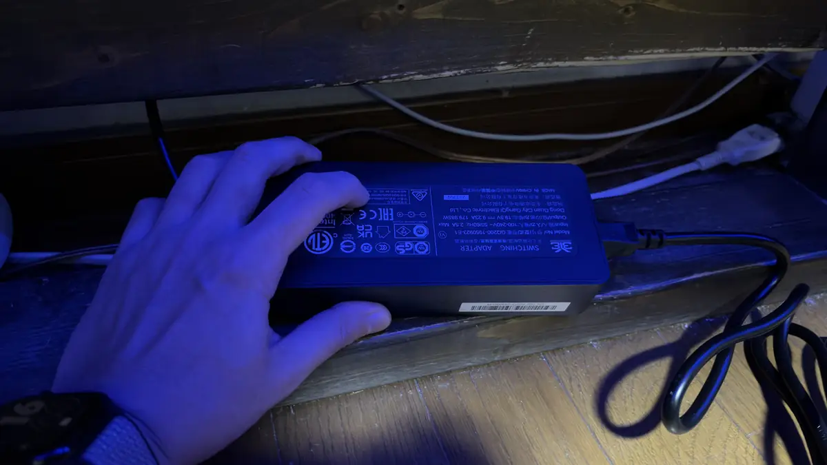 TITAN ARMY P275MV MAXは、電源アダプタの”デカさ”もデメリットの1つで、サイズは幅17×高さ3.5×奥行7cm。一般的なモニターのアダプタと比べるとかなり大きい。